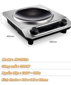 THÔNG TIN SẢN PHẨM : – Tên sản phẩm : Bếp Điện Từ Đơn Tăng Cường Hi-Power 3500w – Model : JN-3502A – Màu sắc : Bạc đen – Chất liệu : thép không gỉ – Công suất: 3500W – Nguồn điện : 220V ~ 50Hz – Kích thước : 400 x 340 x 95mm
