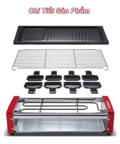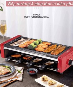 ĐẶC ĐIỂM NỔI BẬT : – Thiết kế tinh tế đơn giản tiện lợi – Công suất 1500W , được làm bằng kim loại thép không gỉ – Bếp nướng dành cho 3 – 7 người dùng THÔNG TIN SẢN PHẨM : – Tên sản phẩm : Bếp nướng 3 tầng đúc lò kiểu pháp – Màu sắc : đỏ đen – Chất liệu : thép không gỉ – Công suất : 1500W – Nguồn điện : 220V ~ 50Hz – Kích thước : 520 x 227 mm