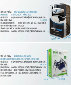 • Thông số kĩ thuật : sóng não và nhện Sử dụng pin : 180mAh liên tục trong 4h Chu vi đầu thích hợp : 40-71cm Chất liệu nhựa an toàn Không ảnh hưởng trực tiếp đến sóng não của bé khi chơi Truyền dữ liệu windown Bluetooth thông minh Sản phẩm hoản toàn mới như ảnh