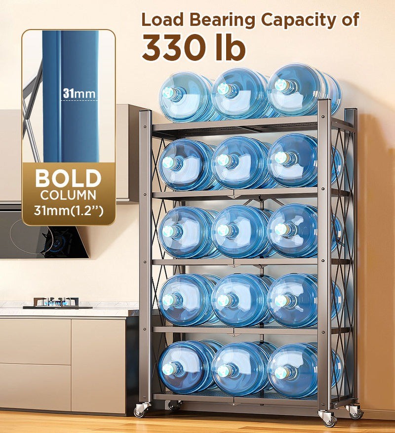 Thiết Kế Thông Minh: Kệ thép chịu lực 5 tầng với khả năng xếp gọn tiện lợi, dễ dàng cất dưới gầm giường, phía sau cửa ra vào hoặc những không gian nhỏ hẹp khi không sử dụng.