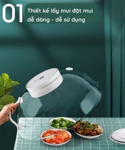 Lồng Đậy sử dụng công nghệ Halogen để làm nóng thức ăn từ từ trong thời gian 30 40 phút . Cùng ưu điểm là đảm bảo được thức ăn nóng đều từ trong ra ngoài và không bị khô , giữ được hoàn toàn 100% các chất dinh dưỡng của thực phẩm khi hâm nóng. Sử dụng được tiện lợi mang đi mọi nơi 1 cách nhẹ nhàng và thuận tiện, hâm nóng cùng lúc được nhiều sản phẩm với đường kính lồng rộng và không bị hạn chế về chất liệu dụng cụ để đựng hâm nóng : thuỷ tinh, sành sứ, kim loại, nhựa,….. Với nhược điểm duy nhất là thời gian hâm nóng đồ sẽ diễn ra từ từ tầm 30 40 phút ở nhiệt độ 45 60 độ . Còn khử khuẩn ở 90 độ. ĐẶC ĐIỂM NỔI BẬT : – Vừa đậy thực phẩm, rau , hoa quả chống ruồi muỗi – Vừa rã đông từ từ thực phẩm – Vừa Hâm nóng thức ăn một cách đơn giản và rất dễ dàng – Vừa ủ hâm nóng sữa cho trẻ nhỏ và khử trùng các dụng cụ cho trẻ con – Vừa khử khuẩn, diệt khuẩn cho tất cả dụng cụ và thiết bị nhà bếp,.. – Sản phẩm được làm từ chất liệu thân thiện với môi trường và không gây độc hại – Sản phẩm sử dụng được cả 2 chế độ : Dùng điện – Không dùng điện – Có Van xả hơi giúp không trộn lẫn mùi thực phẩm…. – Sử dụng thuận tiện chỉ với 1 thao tác duy nhất . Còn lại thiết bị tự động chạy theo chế độ được lập trình sẵn – Chất liệu : Nhựa dẻo cao cấp chịu nhiệt chống vỡ, không gây độc hại đến cơ thể và thân thiện với môi trường THÔNG TIN SẢN PHẨM : – Tên sản phẩm : Lồng Đậy Humanized Design làm nóng, khử khuẩn đa dụng – Chất liệu : Nhựa PC + PP – Công suất : 90w – Nguồn điện : 220V – Kích thước : 520 x 190mm