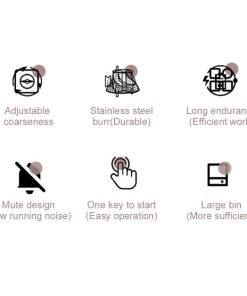 *2. Dung tích lớn 250g: Cối xay được thiết kế với dung tích xay đậu lớn. Bạn có thể nhận được 2-12 tách cà phê tươi.