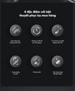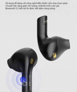 - Nắp trượt tiện dụng, cảm ứng chạm để điều khiển tai nghe: chuyển bài, tăng giảm âm lượng, nhận/từ chối cuộc gọi,…