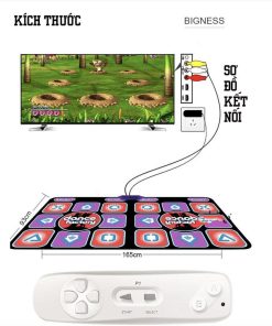 Tên sản phẩm : Thảm Nhảy Kèm Tay Cầm Điều Khiển Từ Xa Kích thước thảm : 165 x 93cm Kích thước remote : 155 x 42mm kết nối không dây 2.4G Cổng kết nối : dùng cho cả TV và máy tính (TV + USB) Độ phân giải : 1080P Bề mặt thảm : mềm maih và dễ chịu, chống trơn trượt, chống nước Tặng kèm thẻ nhớ 8GB cài sẵn game
