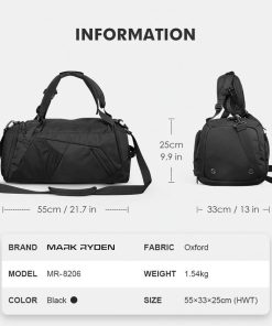 TÚI DU LỊCH CAO CẤP MARK RYDEN – WORKSMAN: THIẾT KẾ HIỆN ĐẠI, TRỰC QUAN TIỆN ÍCH Không giống như những chiếc túi xách ipad, túi thể thao, túi đeo chéo thông thường, túi du lịch cần phải phải đảm bảo nhiều yếu tố: sức chứa lớn để mang tất cả mọi vật dụng cần thiết, nhiều ngăn với thiết kế riêng biệt để phân loại đồ dùng trong chuyến đi dài ngày hay chất liệu chống nước để bảo vệ đồ dùng nhất là đồ công nghệ khỏi các vấn đề thời tiết khắc nghiệt. Nếu bạn chưa có lựa chọn thích hợp nào cho mình, hãy tham khảo ngay mẫu TÚI DU LỊCH CAO CẤP MARK RYDEN – WORKSMAN đến từ Mark Ryden nhé! – Hệ thống ngăn chứa đa tầng lớp đặc trưng từ Mark Ryden, với các vách ngăn chống sốc dày dặn, hạn chế tối đa trầy xước và xô lệch đồ đạc, dễ dàng cất – rút và tìm kiếm. – Khoang chính rộng, chứa được tư trang cá nhân, thiết bị điện tử, vật dụng chuyên dụng cho du lịch,… Ngăn chứa đa kích thước, đa dạng với túi lưới sử dụng khóa zip êm mượt. – Ngăn đựng giày riêng biệt bố trí đóng mở bên hông túi, giúp lưu trữ và thay đổi tiện lợi vượt trội. – Ngăn bên hông túi dạng lưới chống nước, phù hợp cho tư trang vệ sinh cá nhân như mỹ phẩm, khăn ướt,… – Chất liệu Oxford cao cấp chống thấm nước, hạn chế mòn sờn, bong tróc.