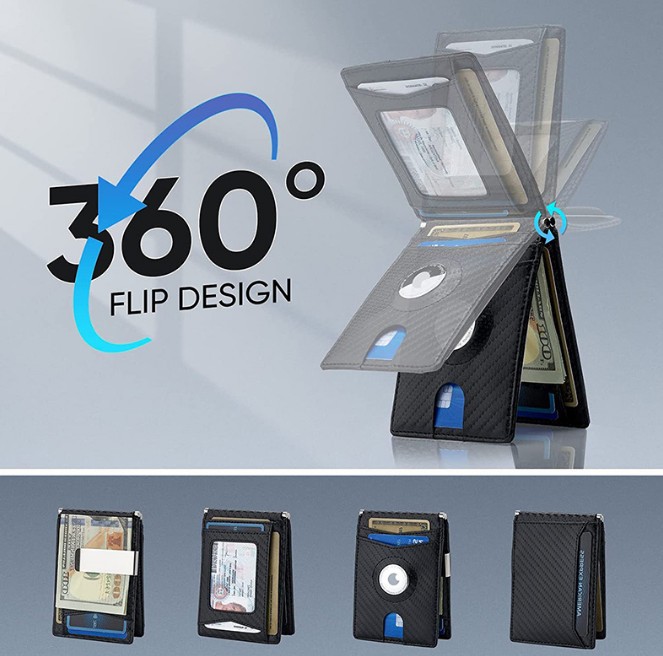 – Thiết kế lật 360°: Chiếc kẹp tiền dành cho nam này có thiết kế lật 360°, rất thuận tiện để lấy bất kỳ thẻ nào của bạn từ mọi góc độ.