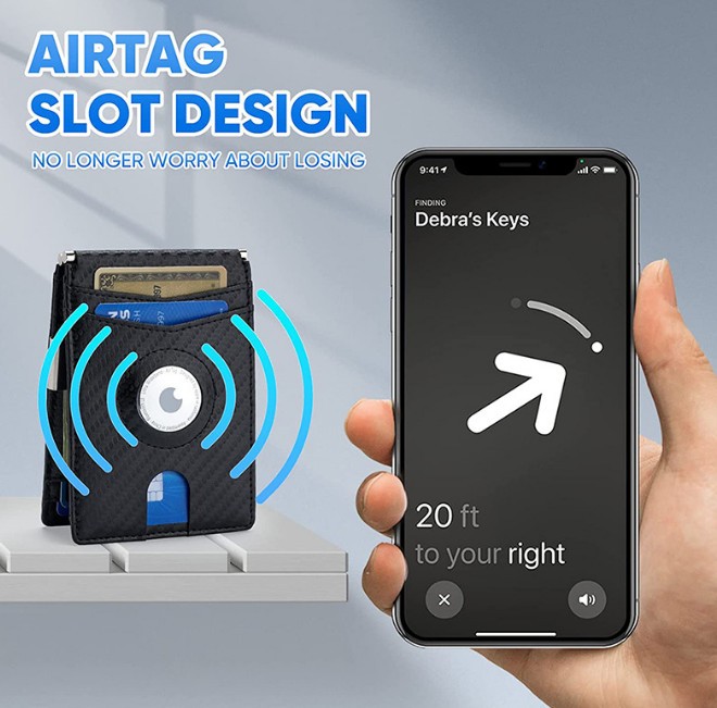 – Tên sản phẩm : Ví Nam Kẹp Tiền Lắp Được AirrTag Carbon Fiber Money Clip RFID